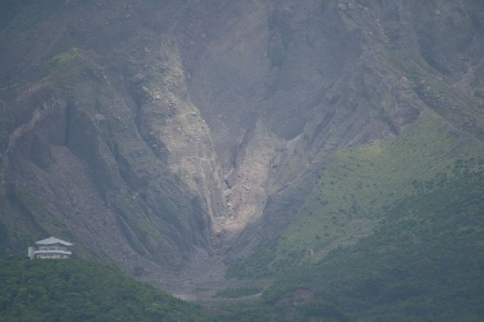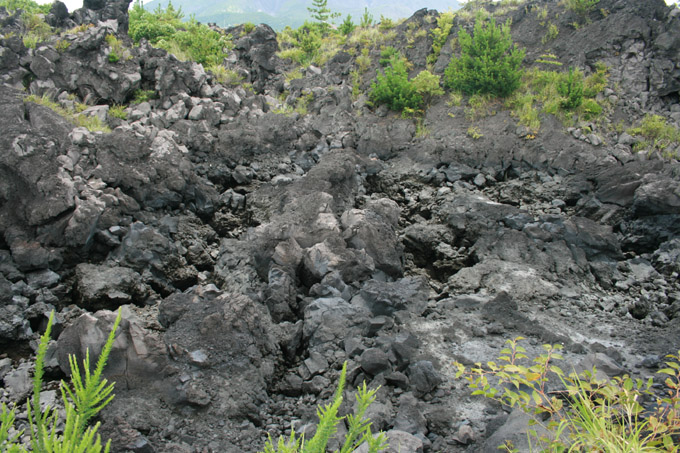 流れ出たばかりは、ものすごい熱さだったんでしょうなあ 山頂付近はかなり険しそうです。ここから海まで、溶岩は流れて来た