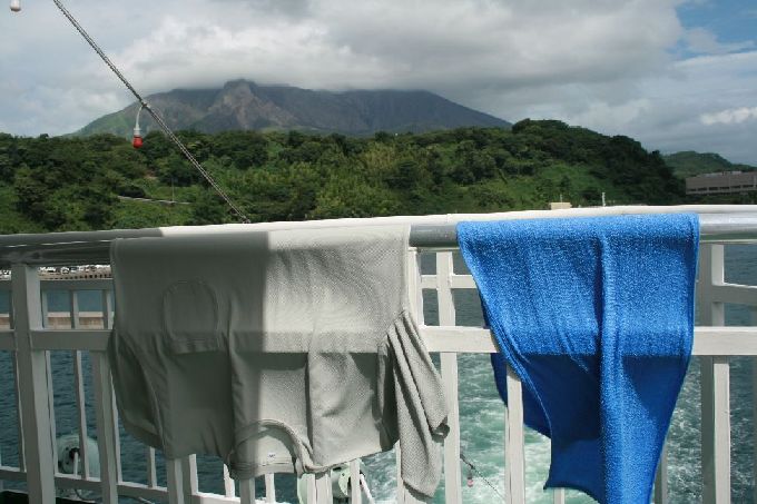 「梅雨明けて 夏来たるらし 桜島 衣干したり 船の甲板」
