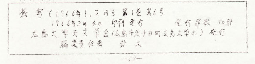 次の1967(昭和42)年度〜1971(昭和46)年度と合わせて、天文学会版の『蒼穹』が刊行された時代と考えていただければよろしいかと思います。
